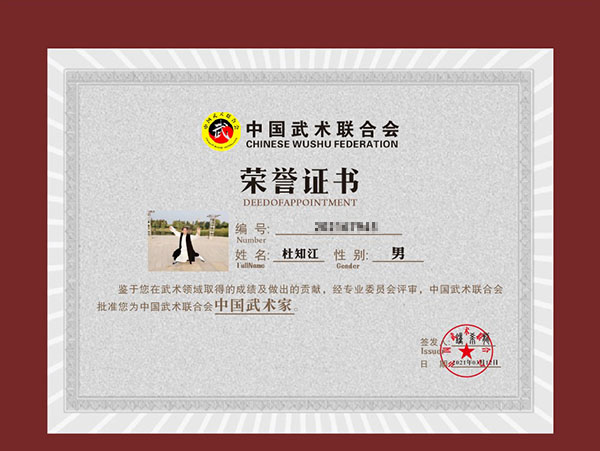 中国武术协会会员 、中国武术八段 、中华人民共和国国家级裁判、太极名家、中华武林百杰 。太极拳传播大使 、中国武术段位制考评员、国家级社会指导员 、中国武术高级教练 、运动技能高级武术健将。
