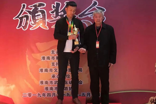 2018年8月11日参加蚌埠市第十届传统武术精英大赛荣获男子组传统一类拳第一名;