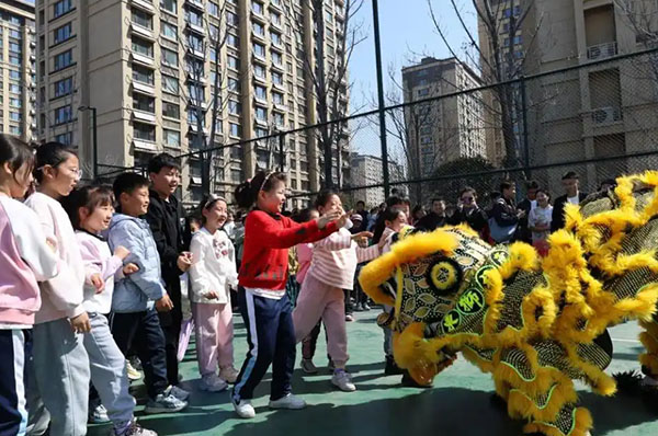 在欢快的鼓点音乐中,曲阜师范大学体育学部党委书记许怀祥、曲阜市时庄街道党工委书记王琦共同为曲阜市青少年武术志愿服务项目——“时庄街道崇信社区实践研学基地”揭牌,研学基地将依托高校资源,定期在社区开展武术教学,使中华武术得以继承发扬。最后,武术队员们轮番展示长拳、棍术、刀术等经典项目,动作行云流水、刚柔并济,既有少年学子的蓬勃朝气,亦展千年武学的深厚底蕴。表演尾声,武术队邀请现场观众参与互动教学,孩子们在专业指导下体验基础招式,掌声与喝彩声此起彼伏。