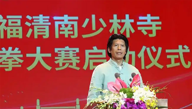 郑祖杰在首届世界南少林咏春拳大赛启动仪式上发言